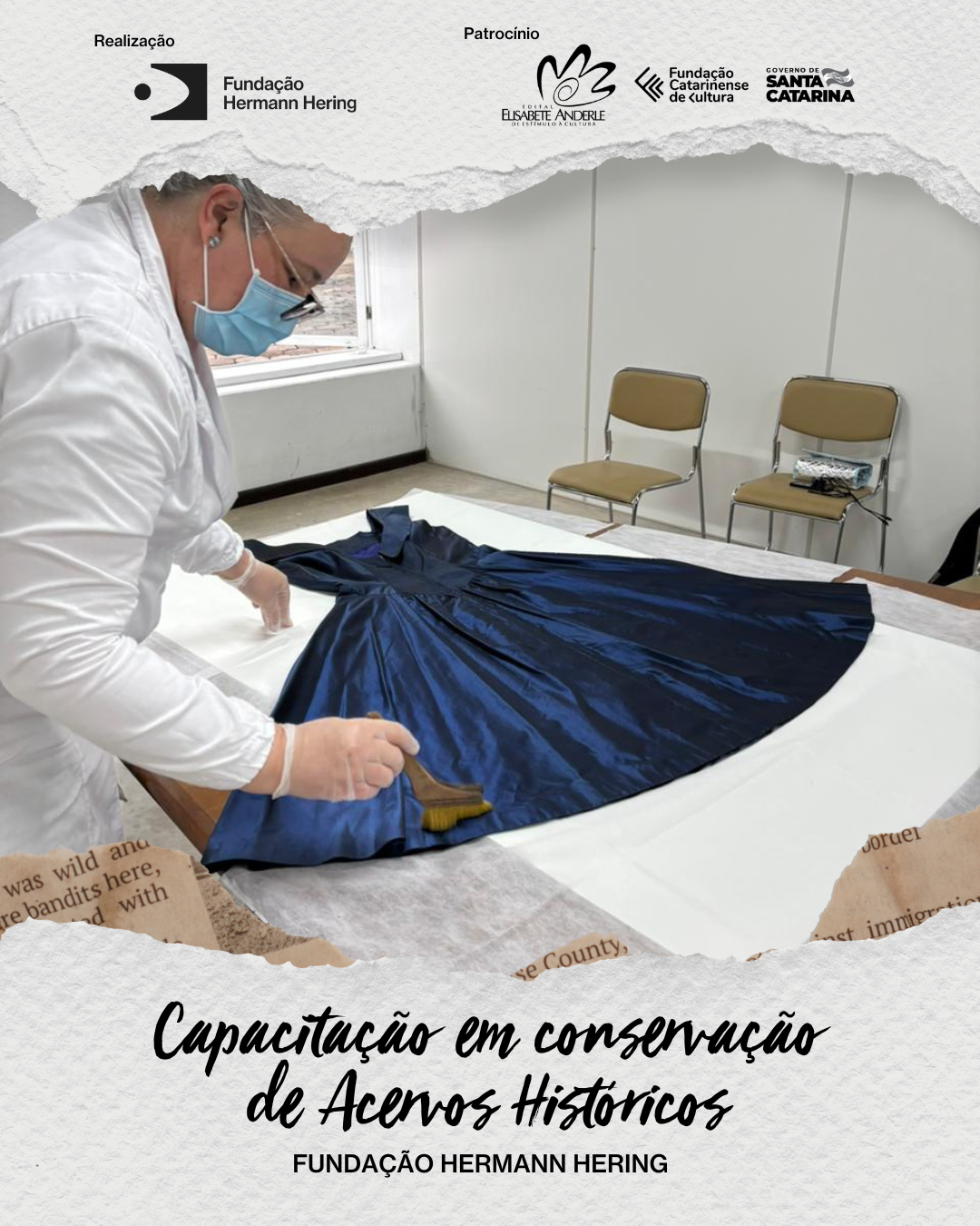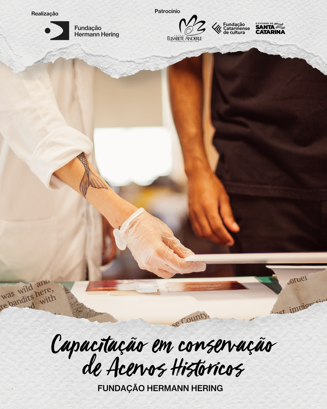 Com o apoio da Fundação Catarinense de Cultura, realizaremos o curso gratuito “Capacitação em Conservação de Acervos Históricos”, iniciativa voltada à formação de profissionais e estudantes interessados na preservação de documentos e memórias.